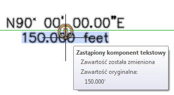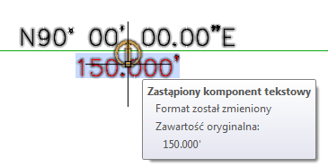 Format został zmieniony: wskazuje, że format etykiety został zmieniony, ale zawartość pozostała niezmieniona. Na poniższej ilustracji kolor etykiety odległości został zmieniony na czerwony.