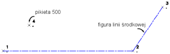 | pikieta | Pikieta służąca do definiowania osi. W przypadku niewprowadzenia numeru punktu jest to pikieta na początku figury. W przypadku wprowadzenia numeru punktu jest to pikieta w określonym punkcie. Jeśli nie zostanie określona pikieta, domyślnie stosowana jest pikieta 0+00. |