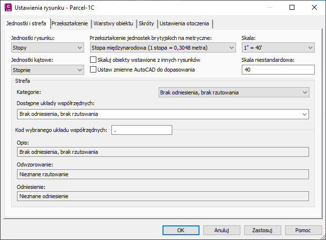 Okno dialogowe Ustawienia rysunku