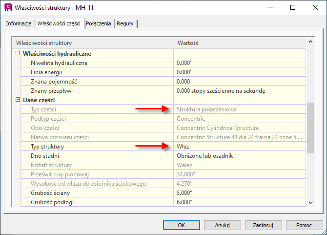 Dzięki odwzorowaniu parametrów i zastosowaniu ich do struktur w istniejących sieciach rurociągów nie będzie wymagane ręczne określanie wartości podczas używania polecenia Analizuj sieć grawitacyjną.