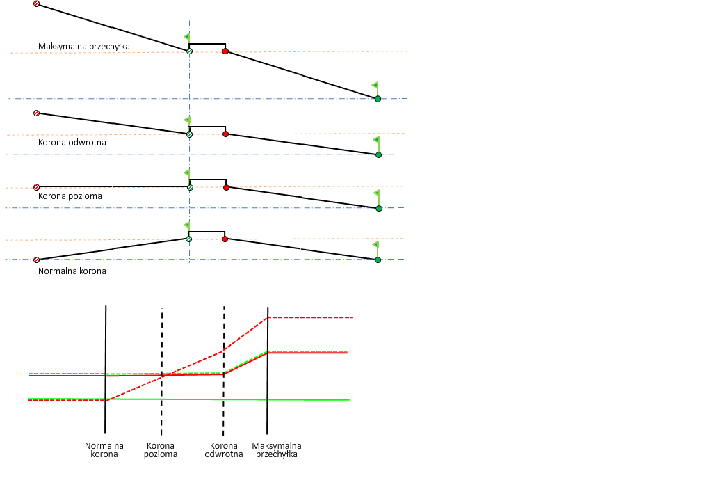 Zachowanie kształtu pasa rozdzielającego oznacza, że po zastosowaniu przechyłki pas zostanie podniesiony w celu dopasowania przechyłki. Ta opcja zachowuje kształt pasa rozdzielającego i podniesione lub opuszczone