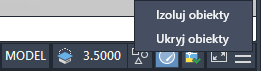 Jeśli na rysunku znajdują się wyizolowane obiekty, ikona w pasku stanu zmienia się w następujący sposób: