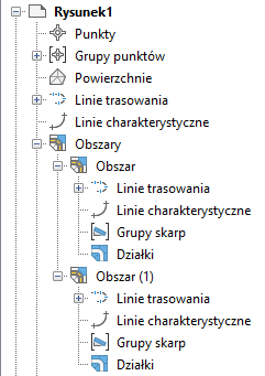 Każda kolekcja topologii obszaru zawiera kolekcje dla linii trasowania, profilowań i działek.