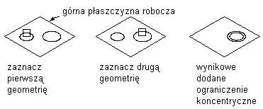 To ograniczenie może być zdefiniowane dla dowolnej kombinacji okręgów i punktów. Wymusza ono niezmienne położenie środka geometrii. Zwykle stosowane jest do dwóch okręgów, wymuszając ich współśrodkowość lub do okręgu i punktu, który stale znajduje się w środku okręgu. Zastosowane do dwóch punktów sprawia, że stale się one pokrywają.