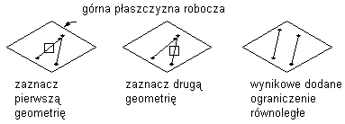 To ograniczenie może być zdefiniowane między parą geometrii kierunkowych, takich jak linie. Wymusza ono równoległość dwóch lub więcej linii.