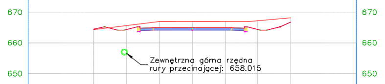 Jeśli przecinająca rura zostanie przeniesiona do innej rzędnej, etykiety zostaną zaktualizowane o nowe informacje.