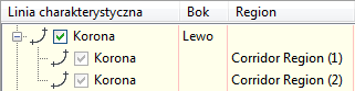 - Wyświetla region korytarza, w którym utworzono linię charakterystyczną.