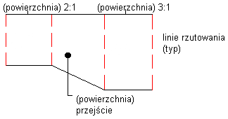 Jeśli użytkownik określi punkt początkowy obszaru skarpy w taki sposób, że nowy obszar zaczynał się będzie wewnątrz istniejącej skarpy w tym samym zarysie, zostanie wyświetlony monit o utworzenie obszaru przejścia. Obszary przejścia można również wstawiać przy użyciu Narzędzi tworzenia skarpy.