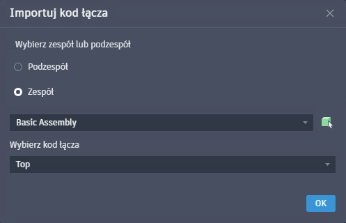, aby ręcznie wybrać podzespół lub zespół z rysunku. Po wybraniu wybierz kod łącza z listy rozwijanej.
