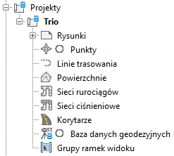 Projekt stanowi kolekcję obiektów, które można udostępniać innym użytkownikom, w tym powierzchnie, linie trasowania, profile, sieci rurociągów, sieci ciśnieniowe i grupy ramek widoku. Wszystkie współdzielone obiekty projektu są wyświetlane w grupach obiektów projektowych w drzewie Nawigator. Członkowie zespołu projektowego mogą tworzyć na rysunkach przeznaczone tylko do odczytu kopie obiektów projektu, nazywane odniesieniami. Ta kopia tylko do odczytu geometrii obiektu projektowego może być użyta do etykietowania, projektowania, analizy i zadań warunkowych.