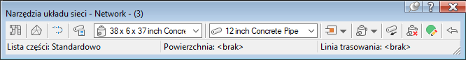 Nazwy listy części, powierzchni i linii trasowania, do których istnieją odnośniki w wybranej sieci przewodów rurowych, są wyświetlone u góry tego paska narzędzi.