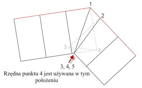 Punkty 3 i 4 są przenoszone do lokalizacji punktu 5, a rzędna punktu 4 jest teraz używana w tej lokalizacji. Lokalizacje oraz rzędne punktów 1 i 2 nie zmieniają się.