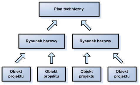 Wzorcem postępowania wspólnym dla wszystkich projektów jest organizacja poszczególnych obiektów projektu, jak linie trasowania i powierzchnie, w oddzielne rysunki. Do tych obiektów są tworzone w procesie projektowania odnośniki na rysunkach bazowych. Pełne plany inżynieryjne i końcowe rysunku projektowe są przygotowywane z zastosowaniem połączenia odniesień do obiektów i odniesień do rysunków.