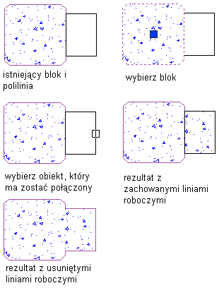 Połącz ciągłe, zamknięte polilinie, okręgi, kreskowania lub bloki w pojedynczy element o zamkniętej obwiedni lub szkic.