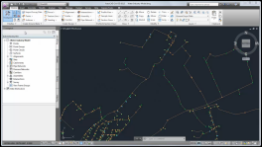 Można utworzyć sieć ciśnieniową z modelu branżowego Instalacje wodne, który utworzono w programie AutoCAD Map 3D. |