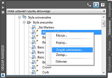 Import stylów i ustawień z szablonu lub rysunku i usunięcie nieużywanych stylów i ustawień. |