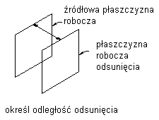 Tworzy płaszczyznę roboczą odsuniętą o konkretną odległość od wybranej płaszczyzny źródłowej. Aby uzyskać więcej informacji, zobacz temat poniżej Płaszczyzny robocze typu Odsunięcie.