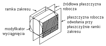 Płaszczyzna taka jest zdefiniowana na jednej z powierzchni granic modyfikatora. Każdy modyfikator ma niewidoczną granicę — sześcienną obwiednią. Można utworzyć płaszczyznę roboczą odnoszącą się do jednej z płaszczyzn takiej granicy. Aby zdefiniować płaszczyznę roboczą typu Odniesienie, należy wybrać modyfikator i źródłową płaszczyznę roboczą wyznaczającą kierunek nowej płaszczyzny. Program wyznaczy granicę, czyli sześcienną obwiednię, elementu i zaproponuje do wyboru dwie możliwe płaszczyzny robocze. Przesunięcie lub zmiana rozmiaru modyfikatora spowoduje przesunięcie odnoszącej się do niego płaszczyzny roboczej.