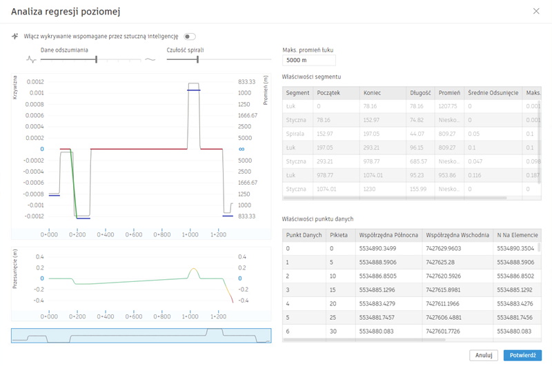 - Sprawdź i dopracuj dane linii trasowania wygenerowanej w wyniku regresji poziomej.