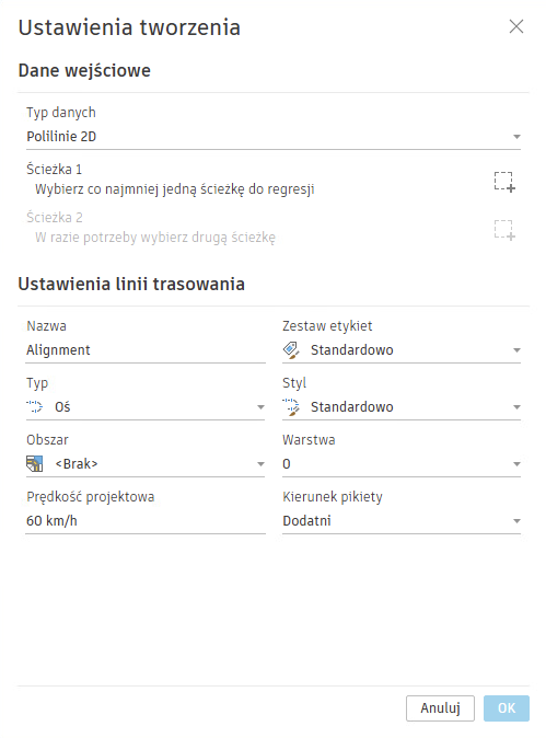 - W obszarze Ustawienia linii trasowania określ następujące parametry: