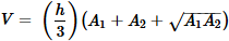 gdzie V oznacza objętość obliczaną na podstawie dwóch powierzchni warstwicy A1 i A2 i odległości w pionie h między dwoma warstwicami.
