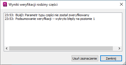 Okno dialogowe informujące, że część jest niepoprawna.