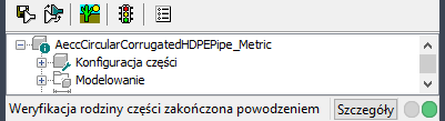 Po pomyślnym ukończeniu tych procedur część zostanie uznana za sprawdzoną, a na pasku stanu pojawi się komunikat informujący o pomyślnym sprawdzeniu części.