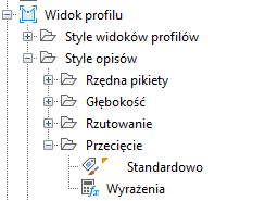 W obiektach przecinających używane są style etykiet Przecięcie widoku profilu.