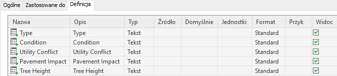 W tej etykiecie zastosowano następujące definicje zestawu właściwości dla danych drzewa: