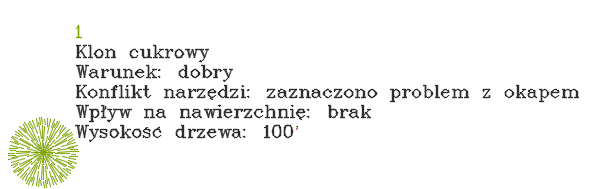 Można na przykład przypisać niestandardowe właściwości do punktów, takich jak typ gatunku drzewa, warunek czy inne dane.