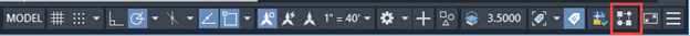 Ikona zgodności zostanie wyświetlona na pasku stanu i wskazuje, czy obiekty drenażu na rysunku są zgodne z bieżącą wersją programu Civil 3D. Najedź kursorem na ikonę, aby wyświetlić etykietę narzędzi z wyjaśnieniem stanu zgodności.