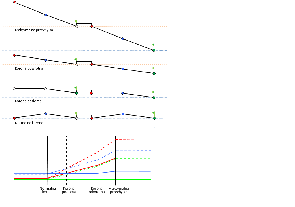 Zachowanie kształtu pasa rozdzielającego oznacza, że po zastosowaniu przechyłki pas zostanie podniesiony w celu dopasowania przechyłki. Ta opcja zachowuje kształt pasa rozdzielającego i podniesione lub opuszczone