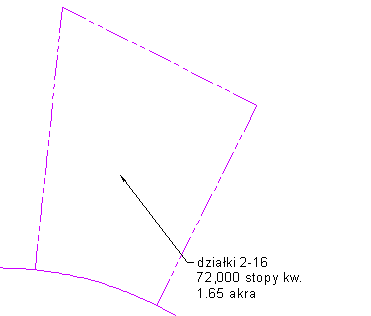 Linia odniesienia pozostaje dołączona do oryginalnego punktu wstawienia etykiety i zostaje rozciągnięta do nowego położenia etykiety. Linia odniesienia może mieć grot strzałki i być linią prostą lub łukiem (splajnem).