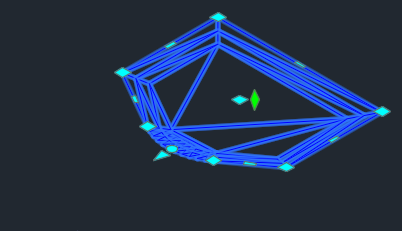 Zielony uchwyt w kształcie rombu w środku zbiornika dopasowuje wysokość nad płaszczyzną lub odsunięcie pionowe zbiornika. Umieść kursor nad uchwytem, aby wybrać wysokość nad płaszczyzną lub odsunięcie. Ruch tego uchwytu jest zablokowany względem osi Z.