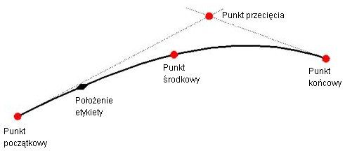 W przypadku etykiet krzywej przejściowej oprócz położenia etykiety, punktu początkowego, końcowego oraz środkowego dostępne jest zakotwiczenie punktu przecięcia.