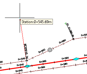 Dodaj obszar nachylony poprzeczniePo kliknięciu tego przycisku okno dialogowe zostanie tymczasowo ukryte, a monit przypomni o wybraniu pikiety wzdłuż linii bazowej macierzystej linii trasowania.