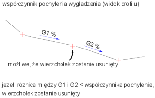 To okno dialogowe służy do określania ustawień usuwania wierzchołków i punktów rzędnych z linii charakterystycznych, linii działek i polilinii 2D lub 3D.