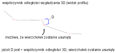 Określa odległość między punktami branymi pod uwagę przy usuwaniu wierzchołków. Wartość odległości należy wprowadzić ręcznie lub kliknąć przycisk