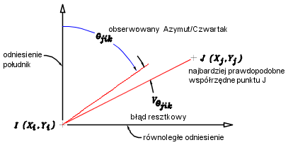 Na poniższym rysunku przedstawiono geometrię równania obserwacji azymutu/czwartaka: