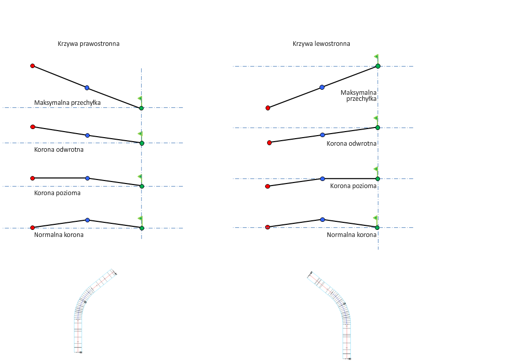 Aby uzyskać wyjaśnienia dotyczące diagramów przechyłki, zobacz temat Informacje o nowych metodach podparcia osi obrotu przechyłki.