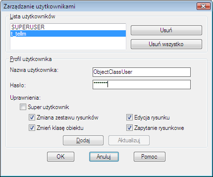 W celu zdefiniowania klas obiektów w konkretnej wersji Zestaw narzędzi AutoCAD Map 3D wymagane są odpowiednie uprawnienia użytkownika.