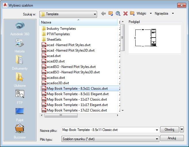 W Zestaw narzędzi AutoCAD Map 3D folder zostanie automatycznie zmieniony na folder Template.