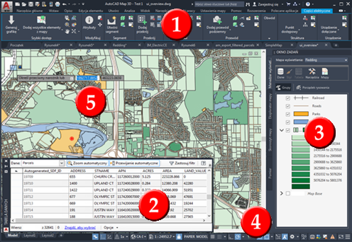 Główne elementy okna programu Zestaw narzędzi AutoCAD Map 3D
