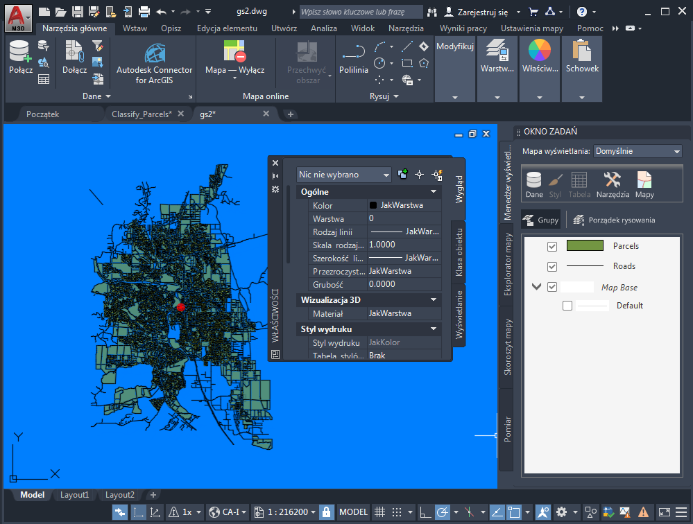 Okno programu Zestaw narzędzi AutoCAD Map 3D