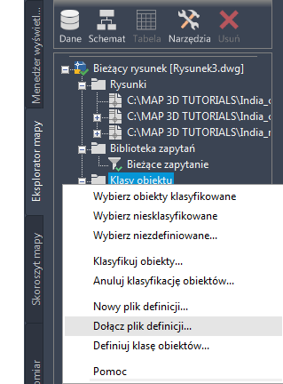 - Dołącz plik definicji obiektów, klikając prawym przyciskiem myszy opcję Klasy obiektów na karcie Eksplorator mapy, która należy do okna zadań, i klikając opcję Dołącz plik definicji.