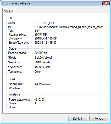 Aby wyświetlić informacje na temat obrazu rastrowego