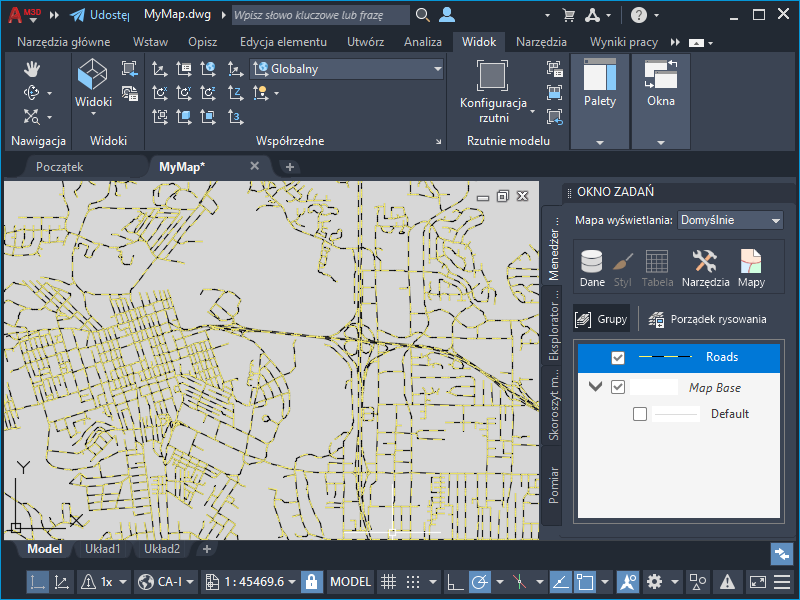 Zwróć uwagę, że pliki map mają takie samo rozszerzenie jak rysunki programu AutoCAD, tj. .dwg. W przypadku obu typów plików używany jest ten sam podstawowy format.