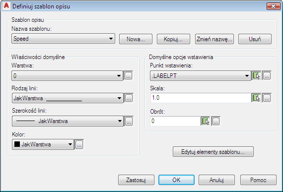 Zostanie wyświetlone okno dialogowe Definiowanie szablonu opisu.