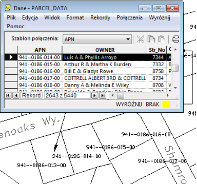 W widoku danych wyświetlane są dane zewnętrzne połączone z rysunkiem.