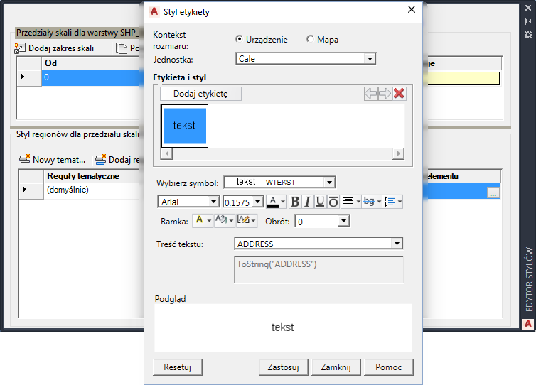 W tym ćwiczeniu do dodawania etykiet do działek zostanie wykorzystany Edytor stylów.